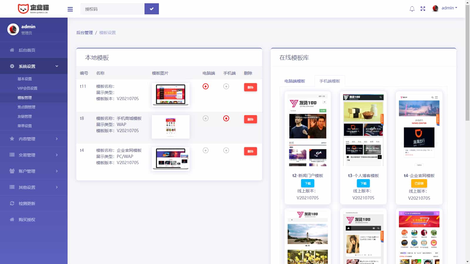 【模板说明】试用版自带一套模板(响应式)