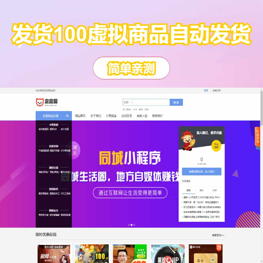 发货100-虚拟商品自动发货系统是一套功能强大的虚拟商品自动发货系统/文章付费阅读系统,无需人工值守,客户在线购买即可自动完成交易。支持缺货提醒/快捷登录/回收站/免登录购买等多种功能。