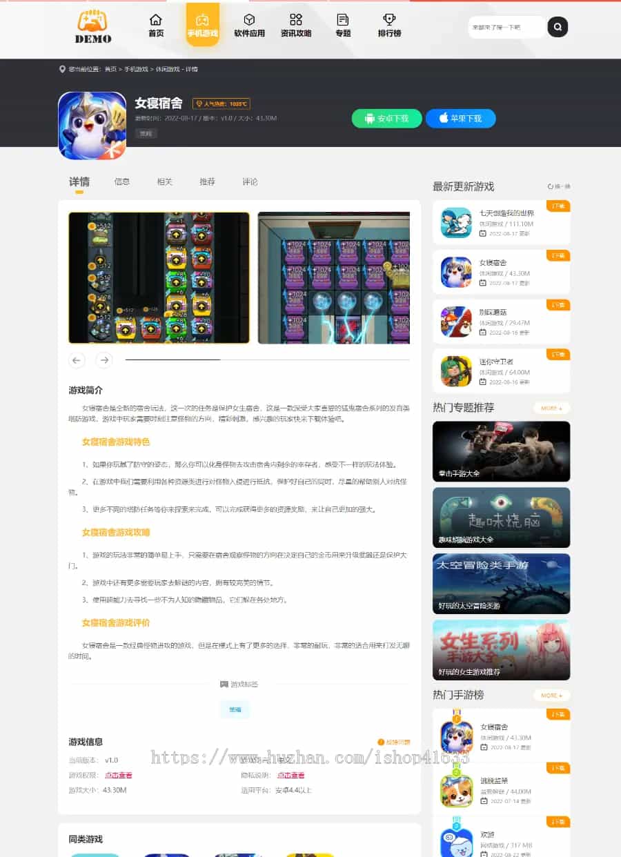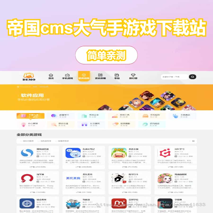 帝国 cms7.5 手游游戏应用软件 APP 下载站整站源码模板 / 百度推送 /sitemap/ 同步生成
