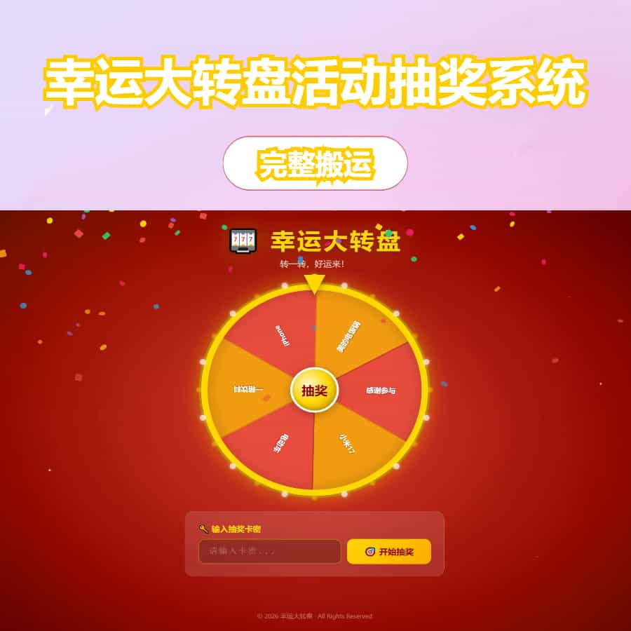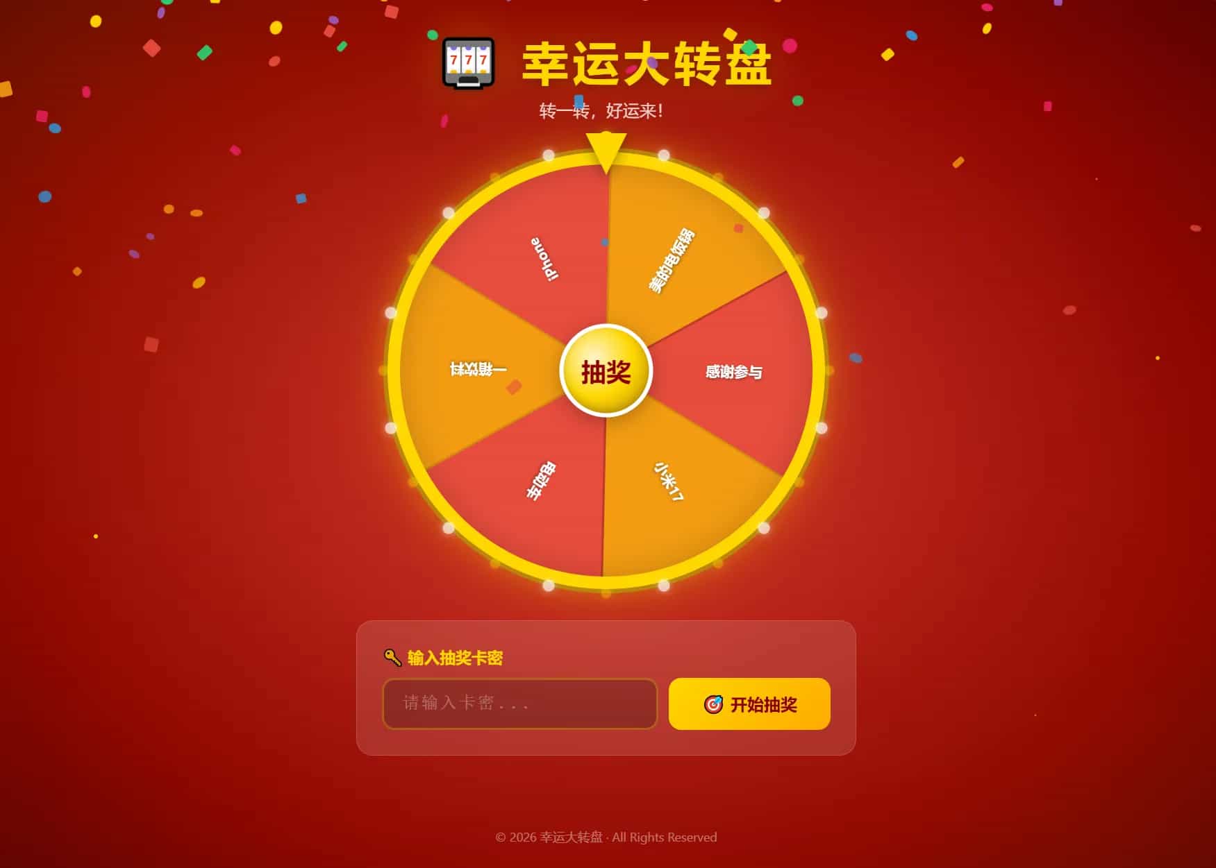 精美 UI** — 红色主题转盘,金色装饰,流畅动画,彩带庆祝效果