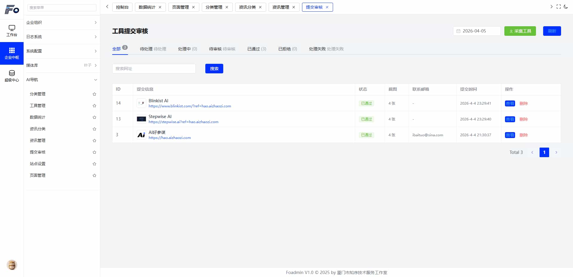 后台可选自动或者手动,自动会自动抓取最新内容,前台提交链接他会自动截图自动编写,功能很强大