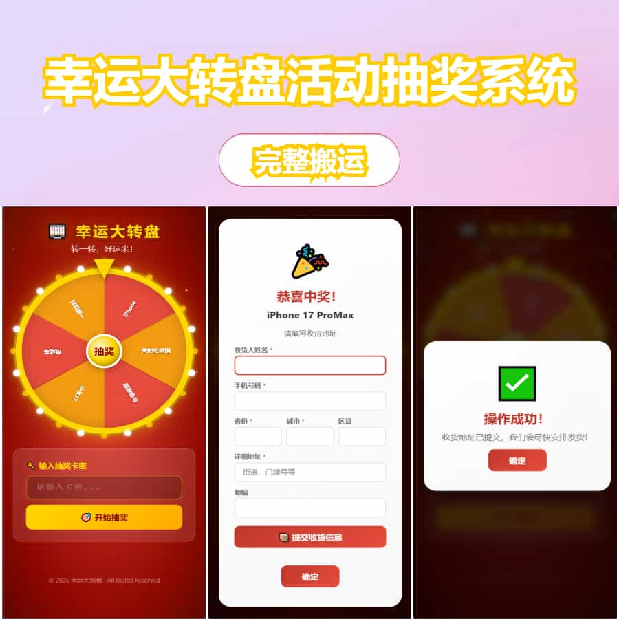 精美 UI** — 红色主题转盘,金色装饰,流畅动画,彩带庆祝效果