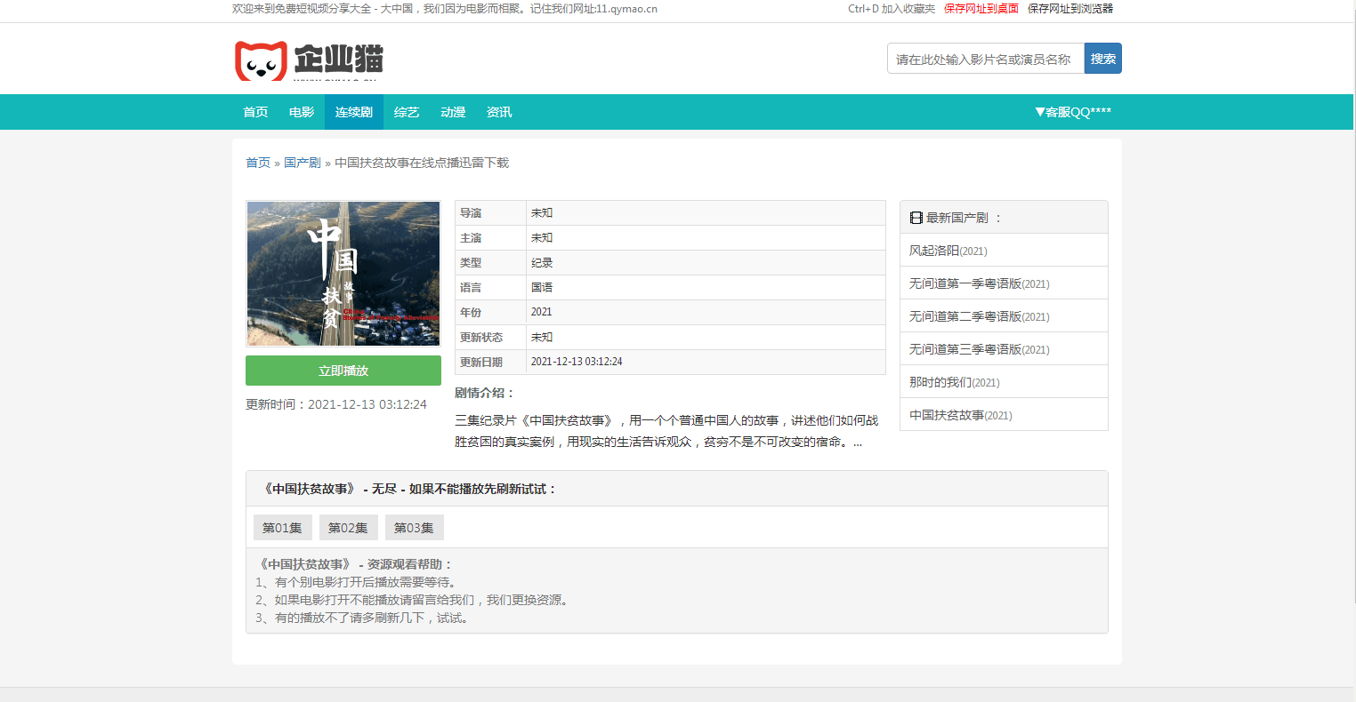 企业猫站长测试了下,还可以,仿的是西瓜影院,模板自适应,挺好的。 美中不足的是,仅有视频的模板。没有资讯啥的模板。但影响不大。模板样式简洁大气, 感觉SEO应该也会比较友好